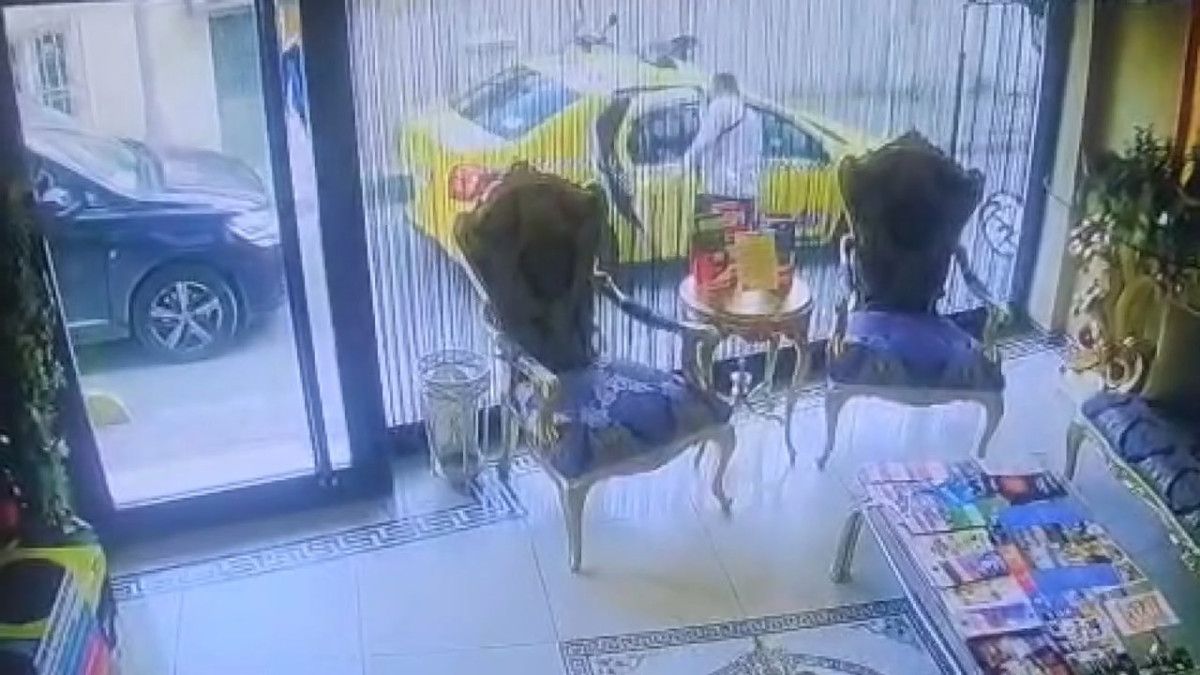 Görüntülerde, ailenin taksiyle otele geldiği ve giriş yaptıkları anlar yer alıyor.