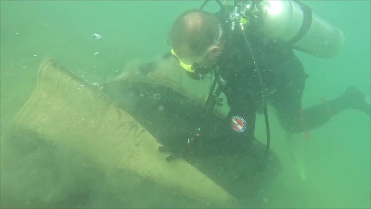 Temizlik yapan dalgıçlar, gölün dibinden çıkardıkları bir poşetin içerisinde büyü buldu.