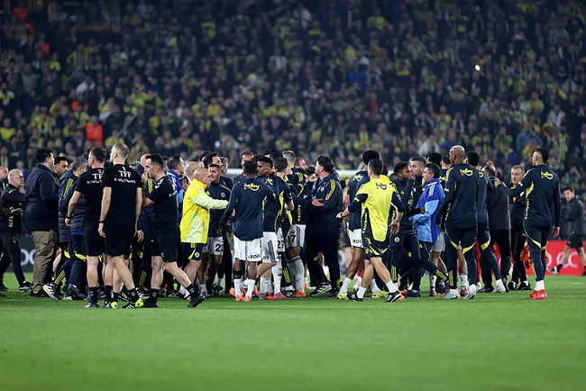 Fenerbahçe, Süper Lig’in 14’üncü haftasında derbi maçta Galatasaray’ı konuk edecek. Bu mücadele öncesinde ısınma bölümündeyken iki takımın futbolcuları arasında gerginlik yaşandı.