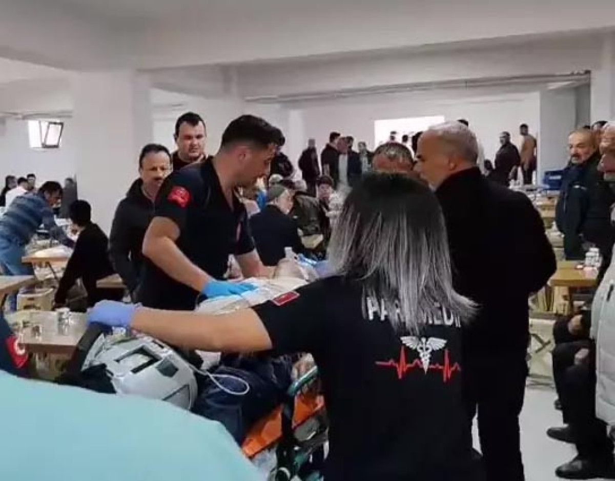 Etkinlikte ikram edilen etli pilavı yerken nefes borusuna et parçası kaçan Sami Ayvaz, fenalaşarak yere yığıldı.