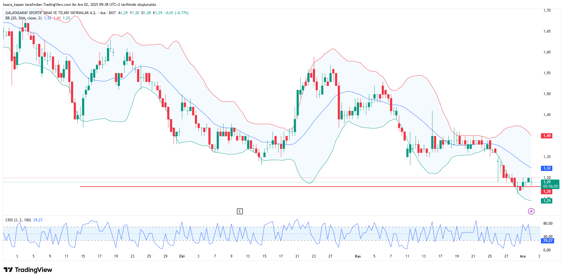 Galatasaray hisseleri de yüzde 2’ye yakın düşüşle 1,28 liraya geriledi.