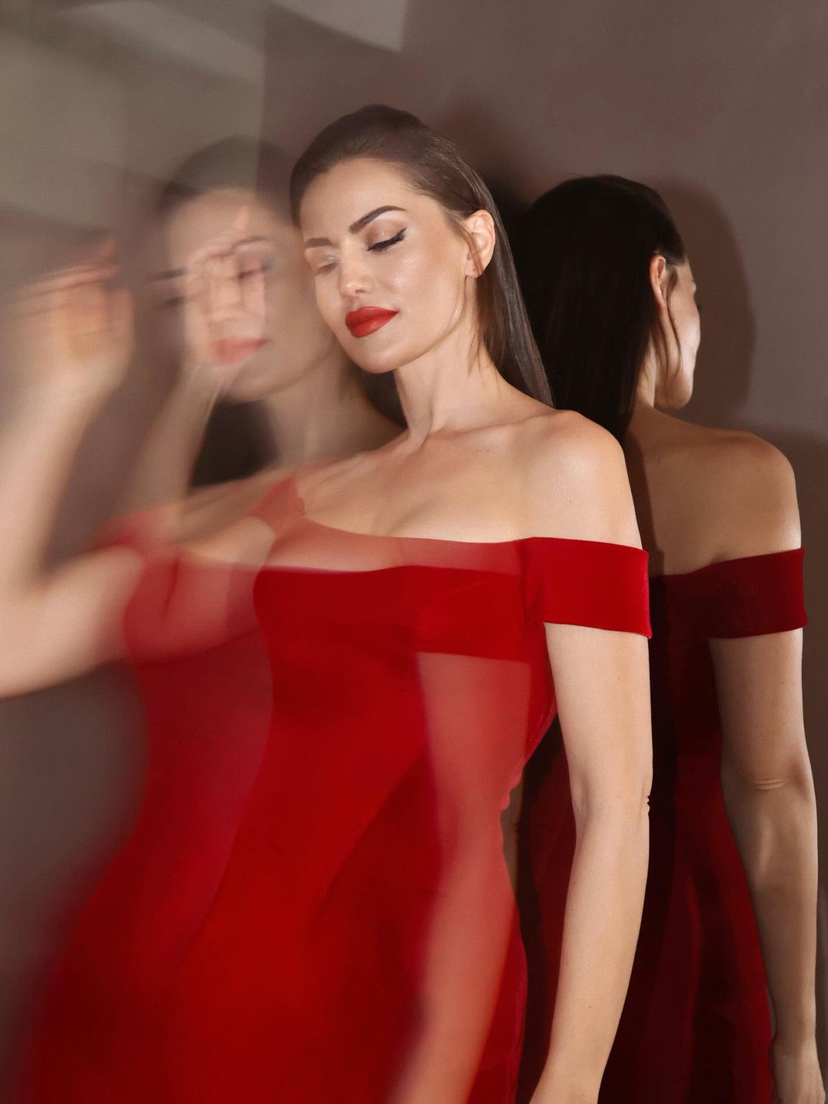 Sadece tatile gitmeyen Evcen, gelmişken davetlere de katıldı. Fahriye Evcen, kırmızı elbisesiyle boy gösterdi. Katıldığı davette boy boy pozlar veren Evcen, takipçilerinin beğenisi sundu.