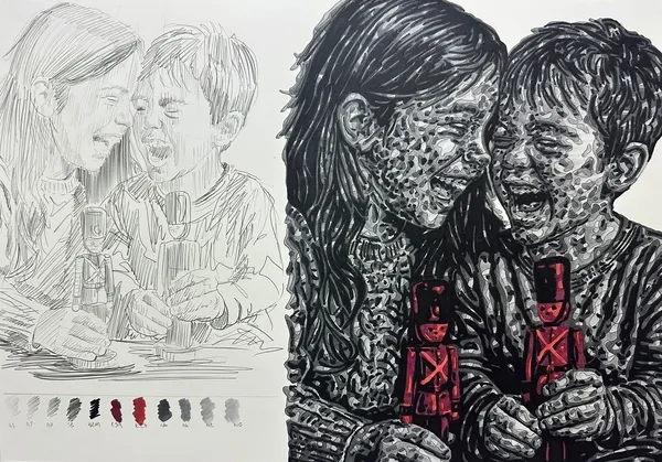 Burada hiçbir şey göz alıcı ya da parlak değil; bu, tedirginliğin hâkim olduğu bir dünya. Çakır’ın imzasını taşıyan ögeler arasında, çocuklara dair kimi zaman lirik bir nitelik taşıyan imgeler, meydan okuyan ya da hüzünlü bakışlara sahip genç yüzleri, bebeklerini kucaklayan genç anneleri, yıkık dökük ahşap evleri ve binaları, devasa arıları; ayrıca derin tonlu monokromatik kompozisyonları ve portrelerine titreşimli, canlı bir yüzey kazandıran, görüntülerine ise hareketli bir doku ekleyen “organik pikselleştirme” olarak tanımlanabilecek bir marker çizim tekniği yer alıyor.