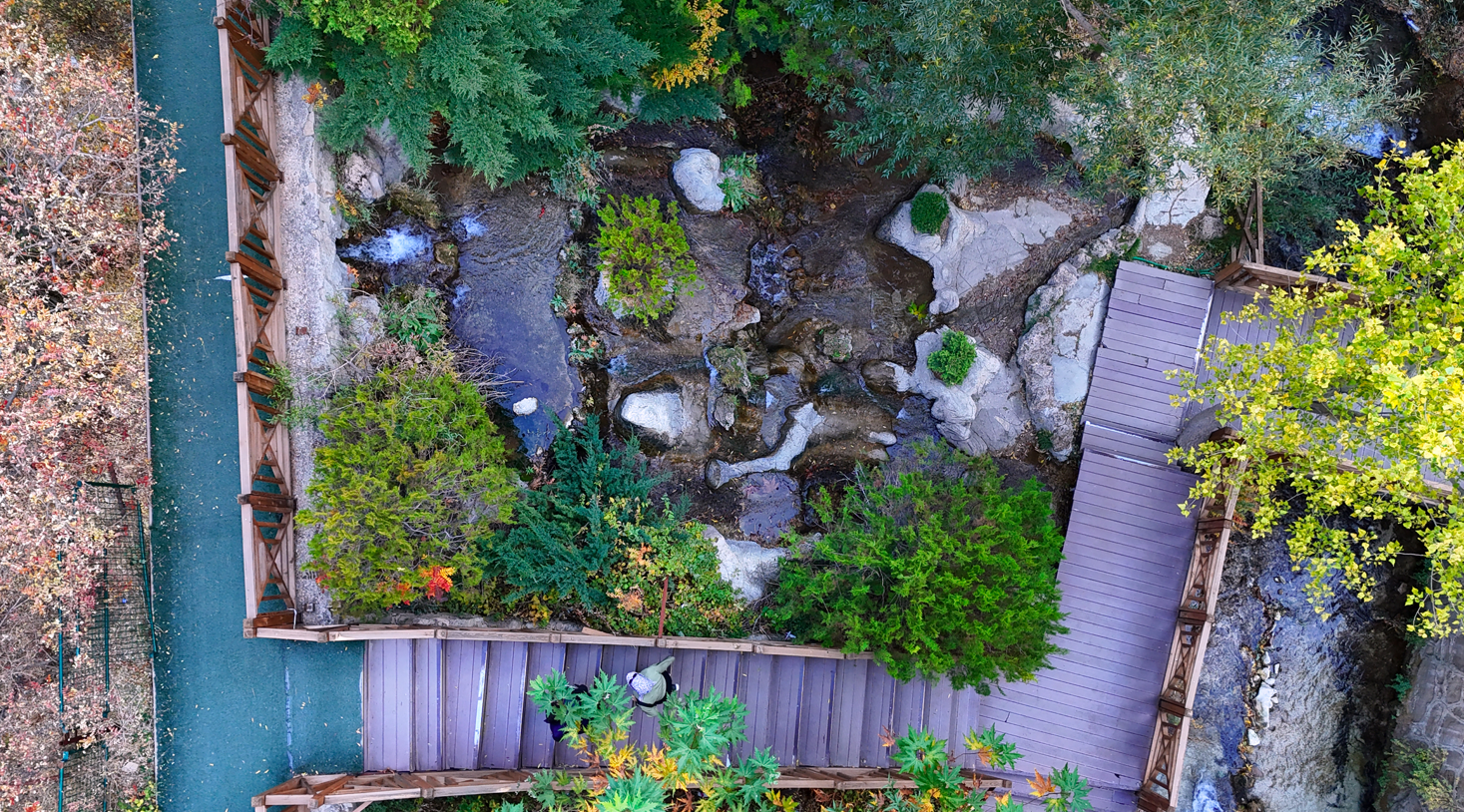 Tabiat parkındaki ağaçlara hakim olan sonbahar renklerinin oluşturduğu ahenk havadan görüntülendi.