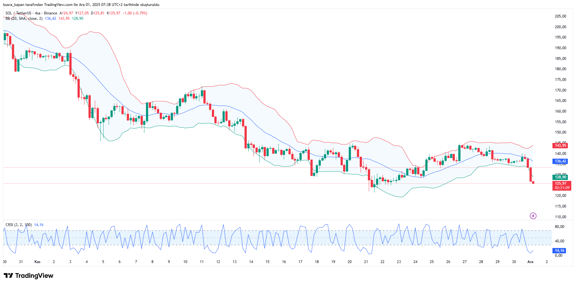 Solana da yüzde 7’den fazla değer kaybederek 125,96 dolara geriledi.