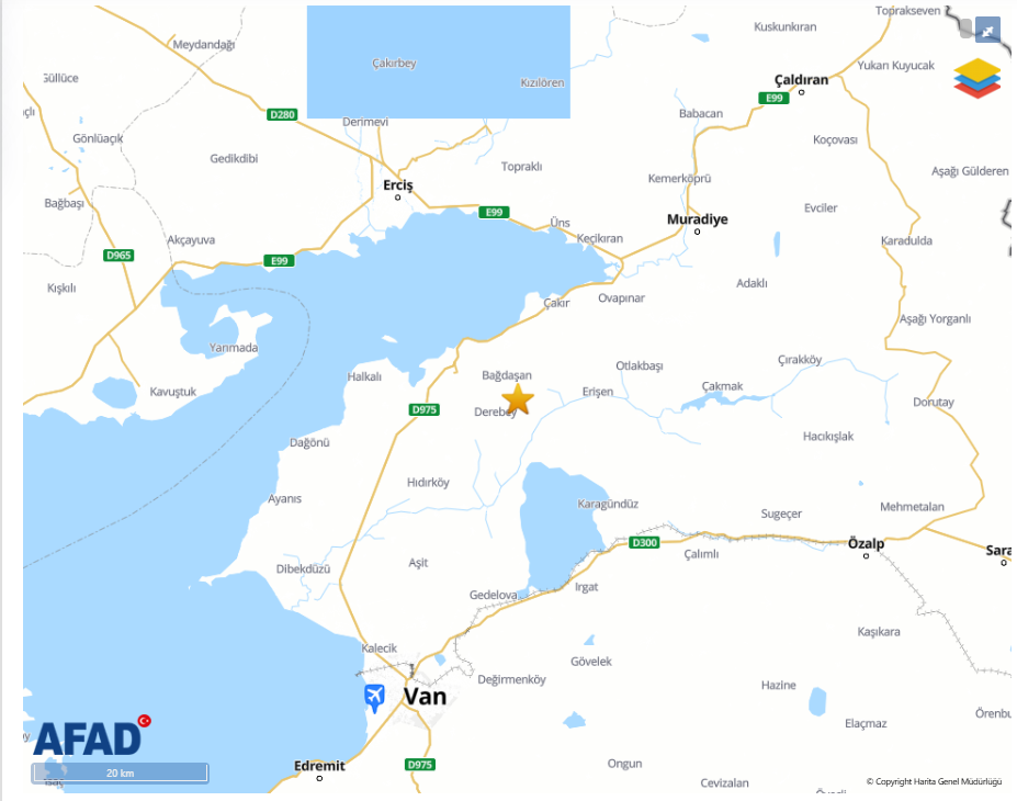 Afet ve Acil Durum Yönetimi Başkanlığı (AFAD) internet sitesinden alınan bilgilere göre Van’ın Tuşba ilçesi sallandı.
