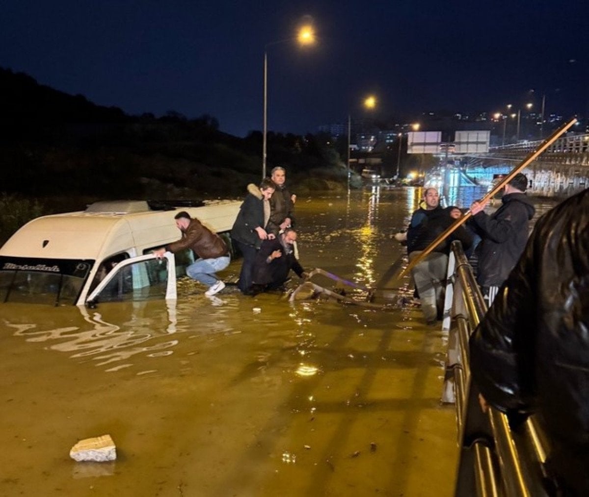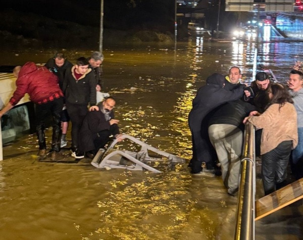 Yoğun yağış sırasında seyir halinde olan araçlardan bazıları yollarda mahsur kalırken, 19 yolcusuyla ilerleyen bir minibüs çevreyolunun bağlantı noktasında sel sularına kapıldı. Kısa sürede yarısına kadar suya gömülen minibüs hareket edemez hale geldi. İçerideki yolcular, hızla yükselen su seviyesi nedeniyle büyük panik yaşadı.