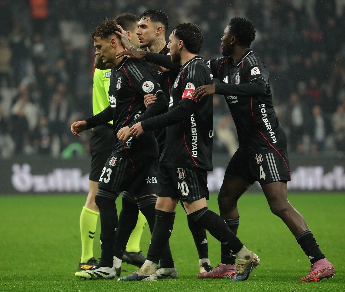 Asllani’nin moralinin bozulmasını istemeyen siyah-beyazlı antrenörler, Arnavut futbolcuya moral verdi.