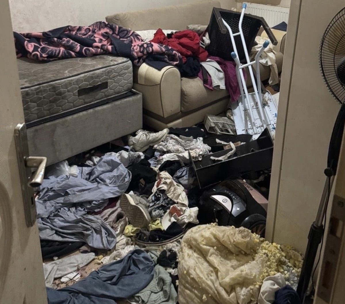 Görüntülerde duvarları soyulan, parke ve fayans olan zemininde sigara söndürülen dairenin odalarının ise çöp yığınlarıyla dolu olduğu görüldü.