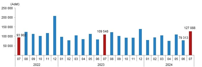 Türkiye genelinde diğer konut satışları temmuz ayında bir önceki yılın aynı ayına göre yüzde 21,7 artarak 115 bin 592 oldu. Toplam konut satışları içinde diğer satışların payı yüzde 91,0 olarak gerçekleşti. Ocak-Temmuz döneminde gerçekleşen diğer konut satışları ise bir önceki yılın aynı dönemine göre yüzde 13,0 artışla 609 bin 251 oldu.