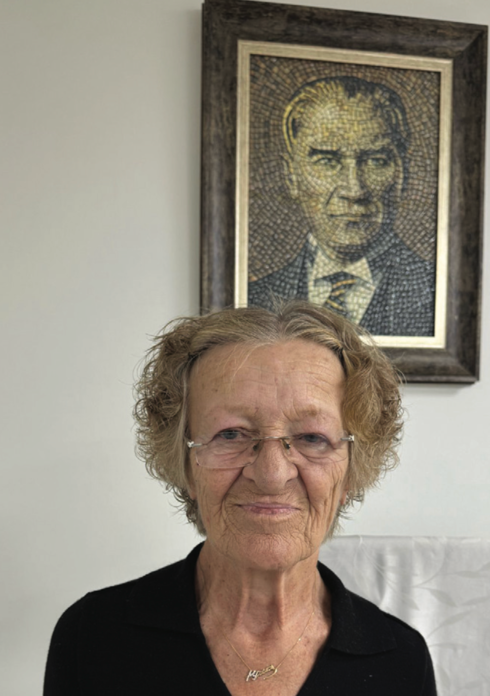 Şu an huzurevinde kalıyo­rum. Burada gönüllü olarak el sanatları kursları açtırdım ve ders vermeyi sürdürüyorum. Duvarda asılı duran Atatürk mozaiğini, el emeğimle parça parça işledim. Her taşında Cum­huriyet sevgim, her renginde öğretmenliğimin izleri var.