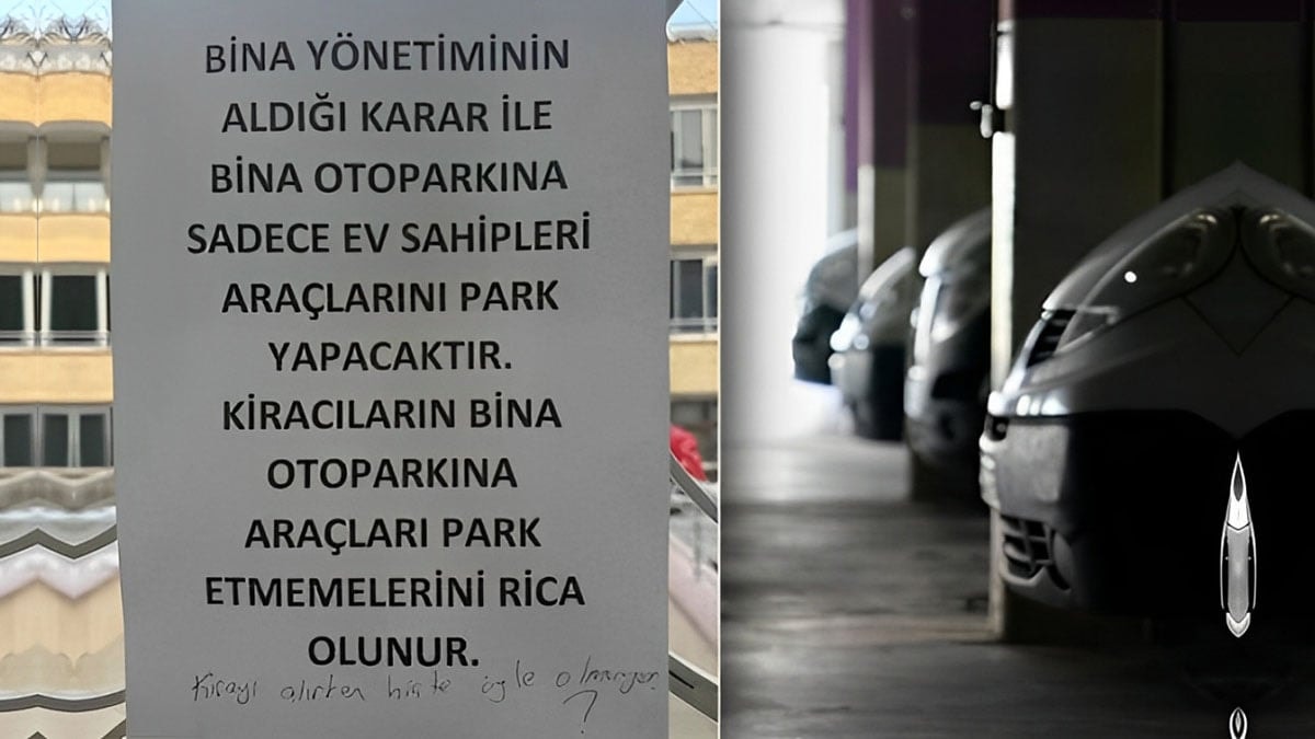 Yazıya göre site yönetimi yeni bir karar almıştı ve buna göre bina içerisindeki otoparka sadece ‘ev sahipleri’ araçlarını park edebilirdi.