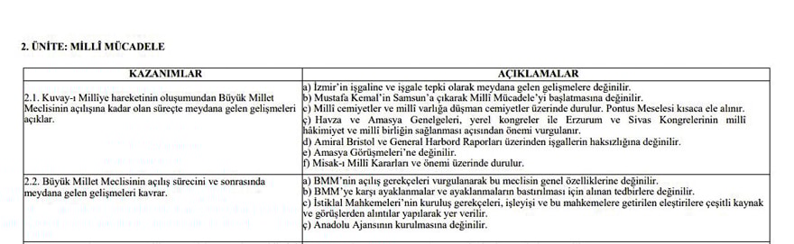 Skandal olay, “Milli Mücadele” başlıklı ikinci ünitede ortaya çıktı. “YKS 2026’ya girecek aday öğrenciler, Büyük Millet Meclisi’nin (BMM) açılış süreci ve sonrasındaki olayları kavrar” ifadesi yer aldı. 581 sayfalık raporda, BMM ifadesi kullanılırken, “Türkiye” kelimesinin silindiği görüldü.