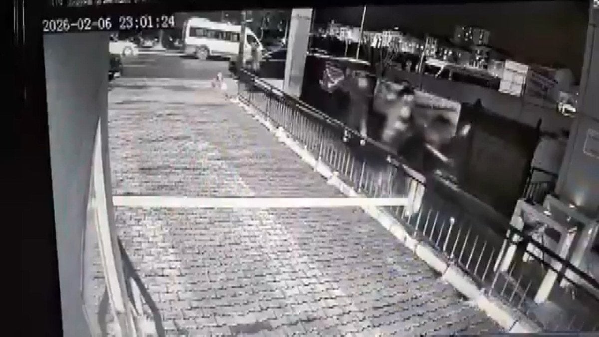 Öte yandan, polis memurunun kalabalık bir grup tarafından darbedildiği, eşinin ise tokat atılarak yere düşürüldüğü anlar çevredeki bir iş yerinin güvenlik kamerasına yansıdı.
