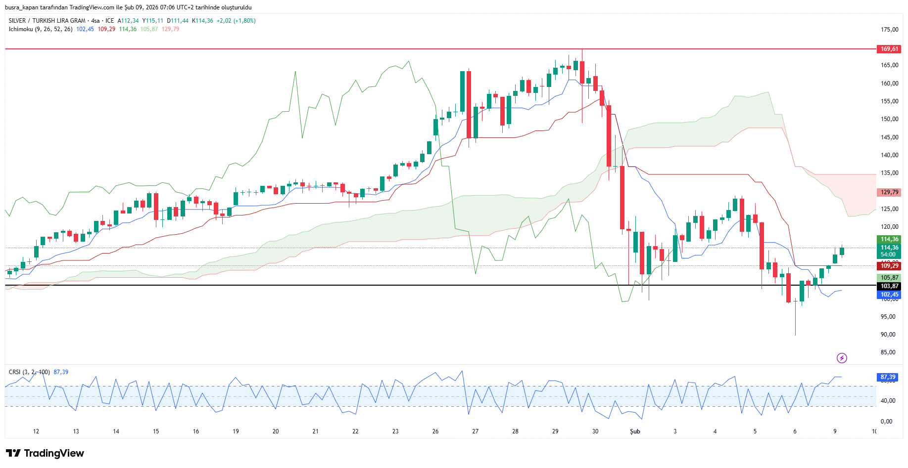 Gram gümüş güne 109,8 liradan başladı. Gün içinde en düşük 109,6 lira, en yüksek de 114,84 lira seviyesi görüldü. Gram gümüş 08.02’de 114,66 lirada bulunuyor.