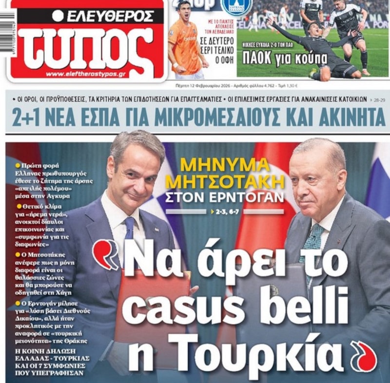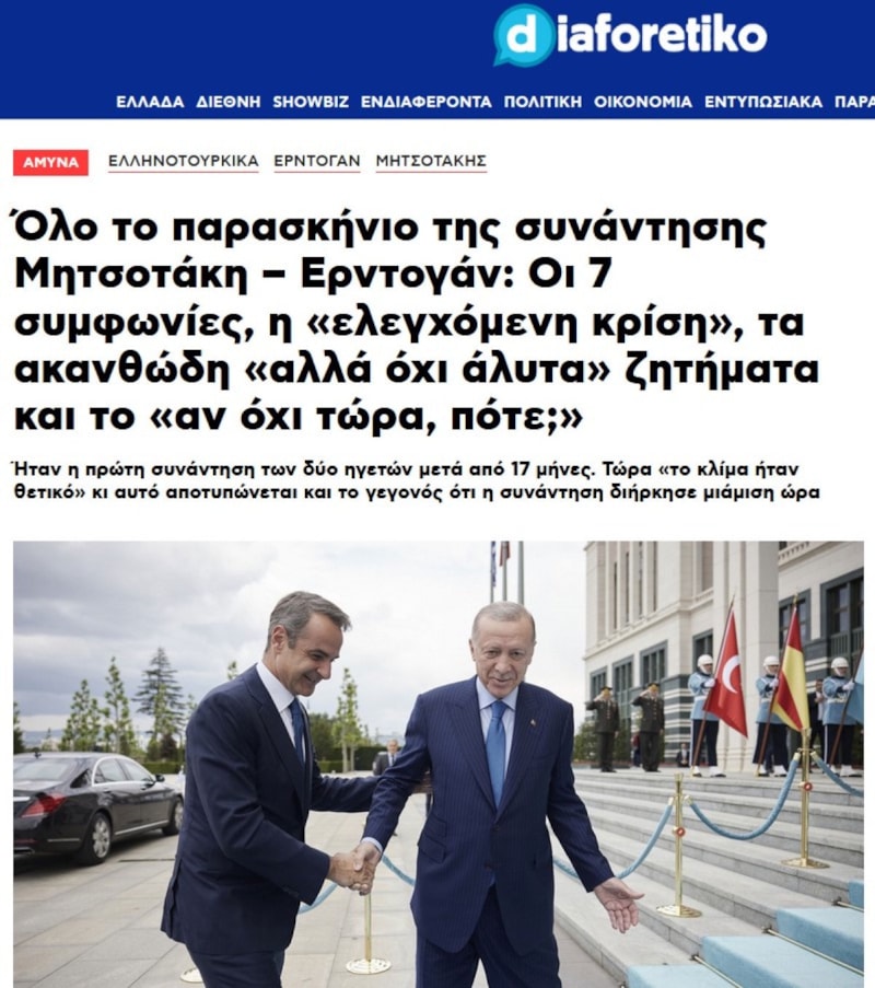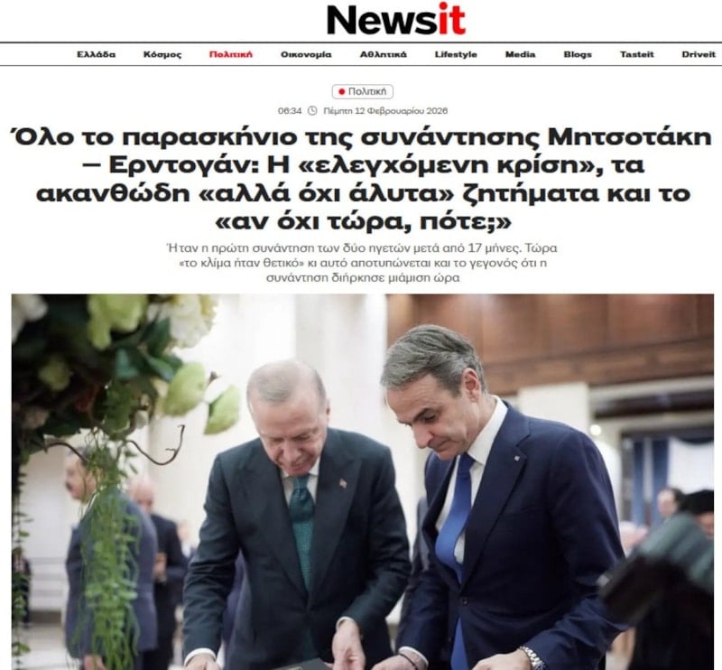 Protothema gazetesi, görüşmeyi “Her türlü tehdidi ortadan kaldırmanın zamanı geldi” başlığıyla duyurdu. Haberde, liderlerin yaklaşık bir buçuk saat süren görüşmesinin olumlu bir atmosferde gerçekleştiği ve karşılıklı iş birliği mesajlarının öne çıktığı aktarıldı.