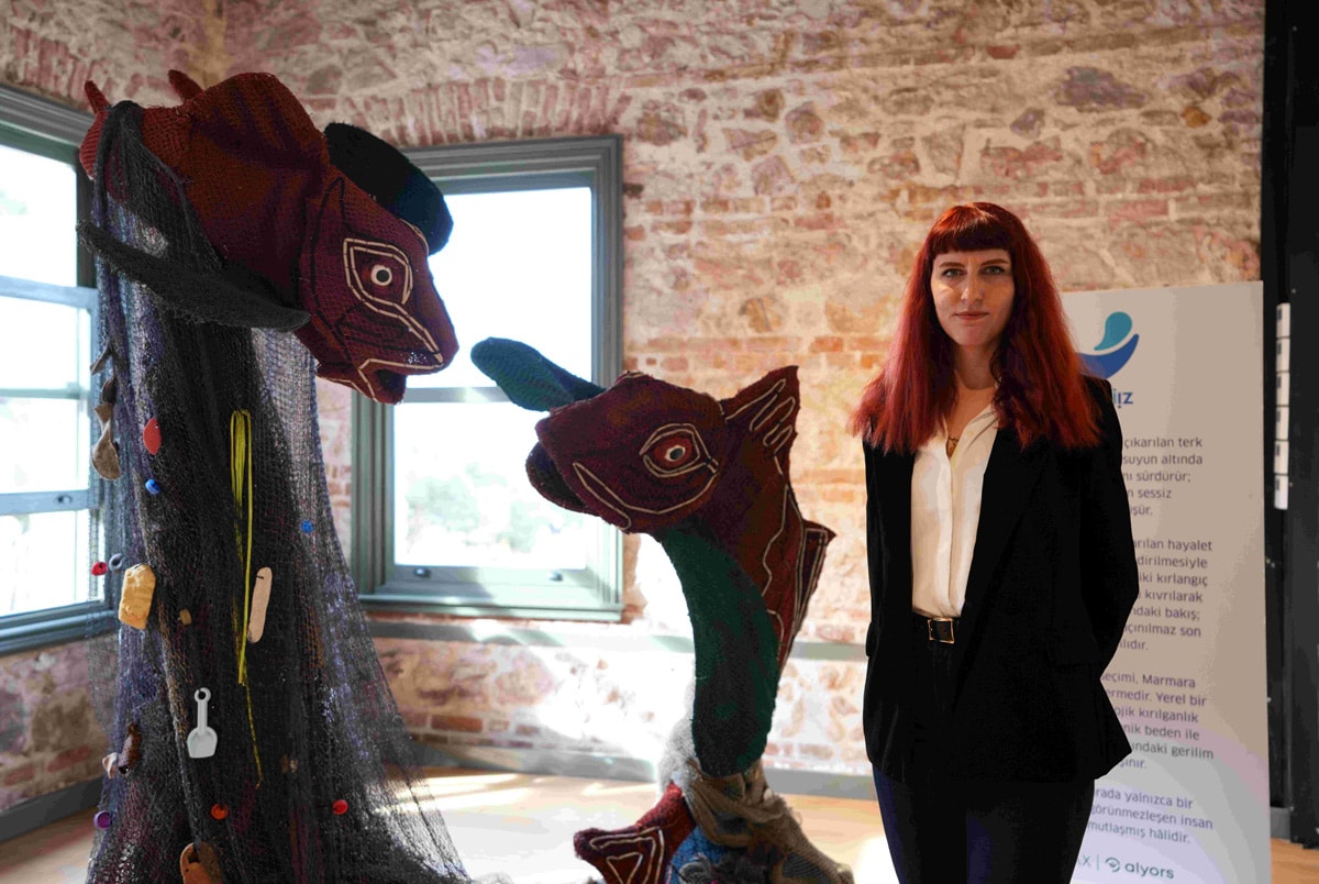 ‘Mavi İz’ projesi kapsamında hayalet ağ konusunda uzmanlaşan dalgıçlar Marmara Denizi’ne dalarak terk edilmiş ağları tek tek çıkardı… Bu ağlar da heykel sanatçısı Büşra Kölmük’ün ellerinde birer sanat eserine dönüştü. Tehlikeyi gözler önüne seren eserler ise Büyükada Taş Mektep’te sergilendi.