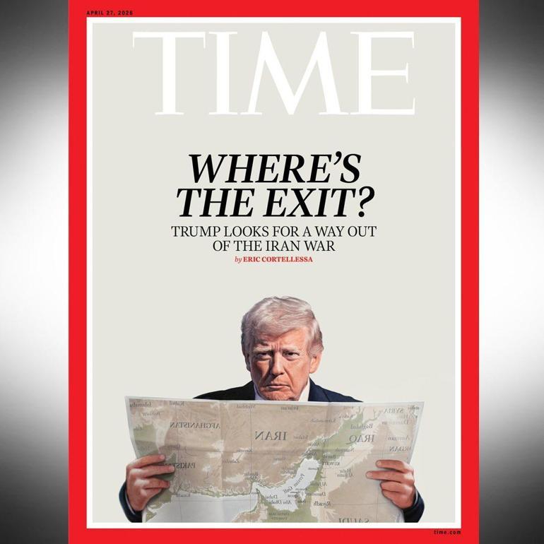 Time dergisinin son sayısının kapağında, “ÇIKIŞ NEREDE? ABD Başkanı Trump, İran savaşından çıkmak için yol arıyor” manşeti yer aldı. Kapak görselinde ABD Başkanı Donald Trump, elinde bir Orta Doğu haritası tutarken tasvir edildi.