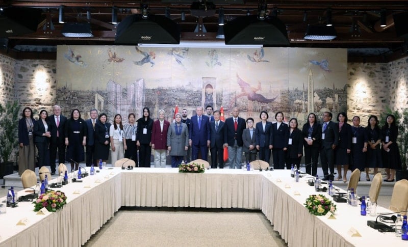 Cumhurbaşkanı Erdoğan, AK Parti Genel Merkez Kadın Kolları Başkanlığı ev sahipliğinde düzenlenen Uluslararası Asya Siyasi Partiler Konferansı (ICAPP) Kadın Kolu 9’uncu toplantısı için İstanbul’da bulunan katılımcıları Cumhurbaşkanlığı Dolmabahçe Çalışma Ofisi’nde kabul etti.