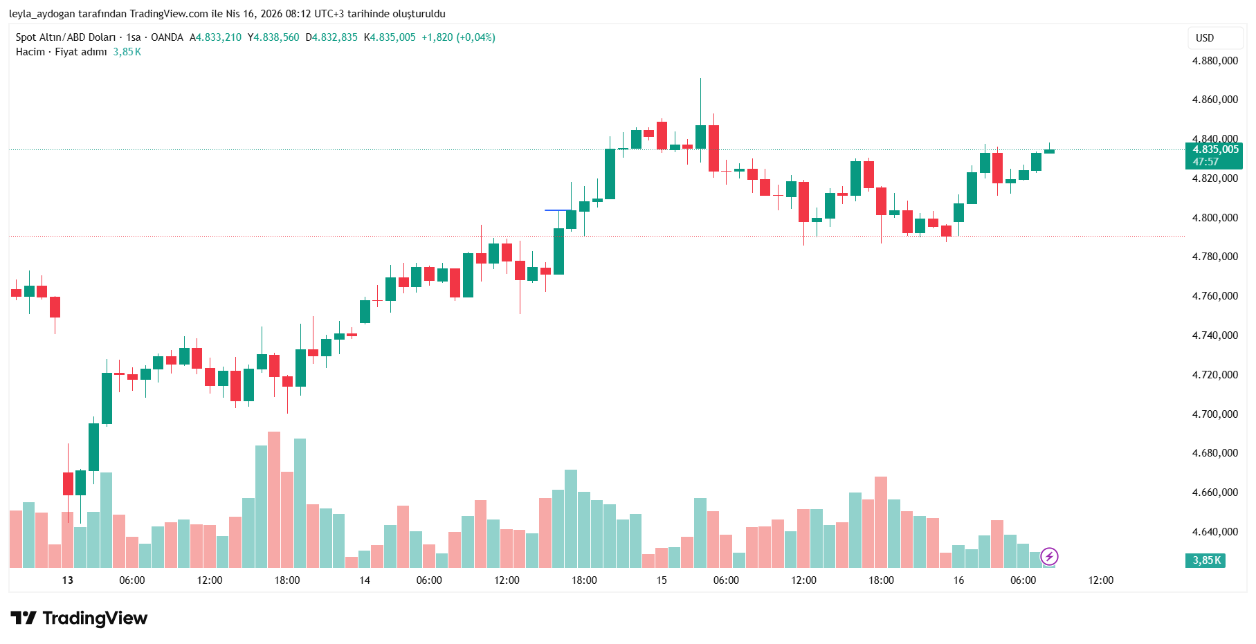 Günün ilk saatlerinde gram altın 6 bin 957 TL seviyesindeyken ons altın kritik seviye olan 4 bin 800 doların üzerinde 4 bin 853 dolardan işlem görüyor.